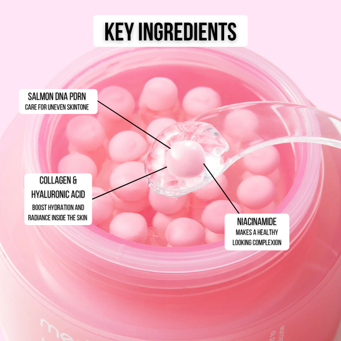 The Medicube PDRN Capsule Cream works by using tiny capsules filled with PDRN, collagen, and other active ingredients. When blended into the gel cream, the capsules burst and release these ingredients fresh onto the skin. PDRN supports skin repair and elasticity, while collagen and hyaluronic acid provide deep hydration and plumping. Together, they help improve radiance, firmness, and overall skin barrier health.